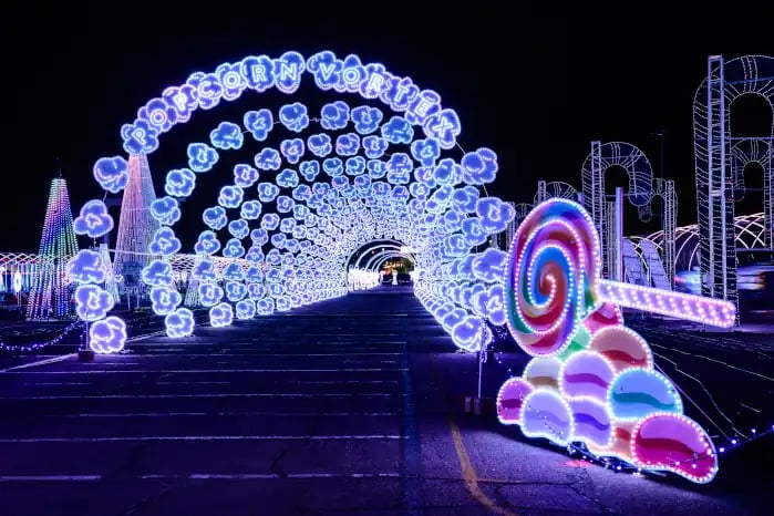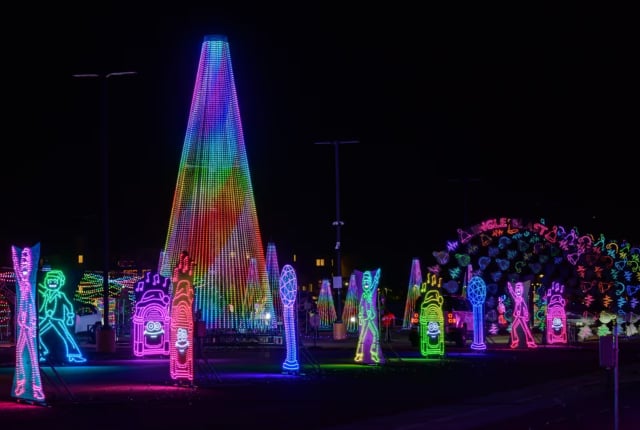 Drive through millions of synchronized lights set to holiday music in this immersive, animated light spectacle. Each location has a different theme and is perfect for families who want a cozy, stay-in-the-car holiday outing.