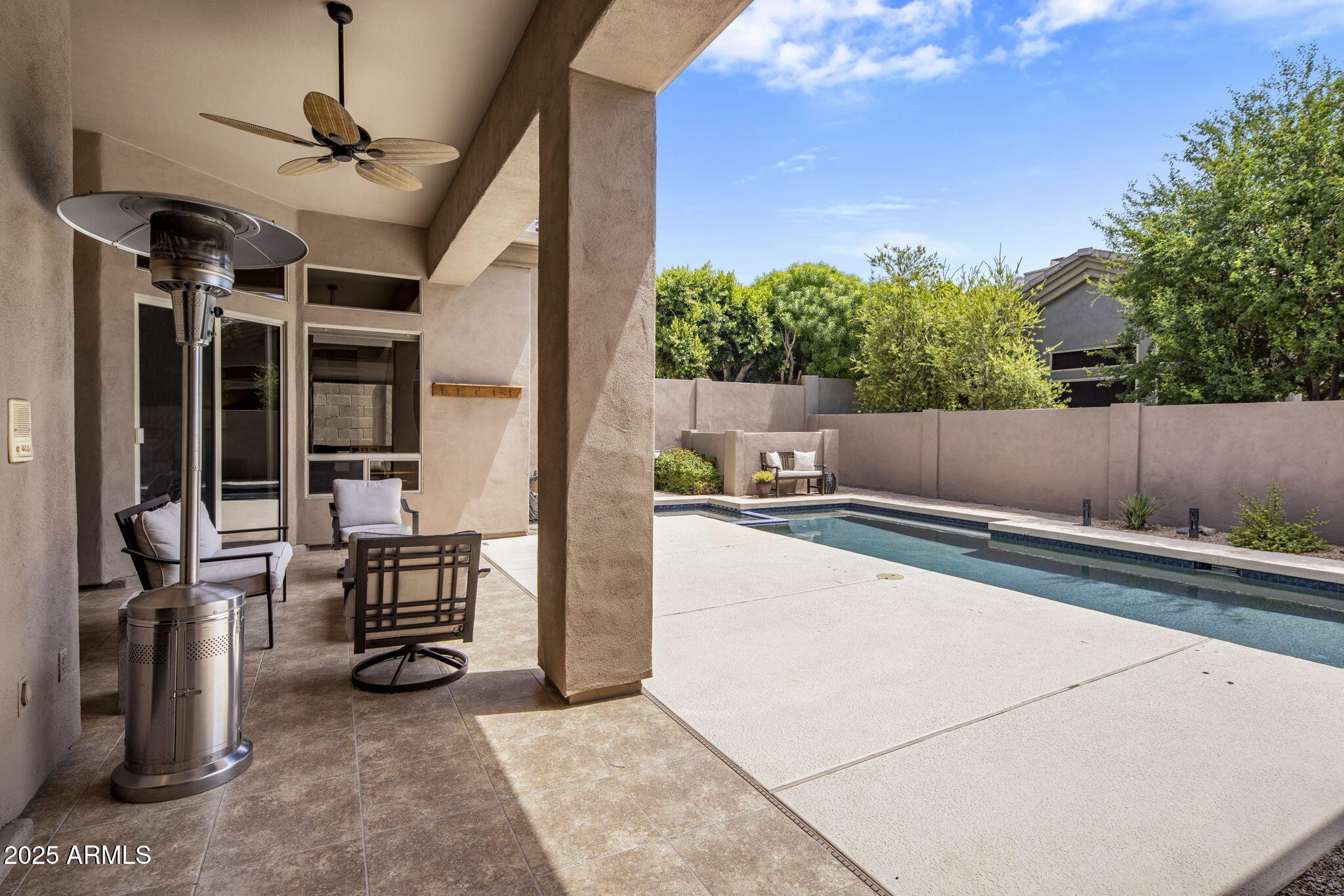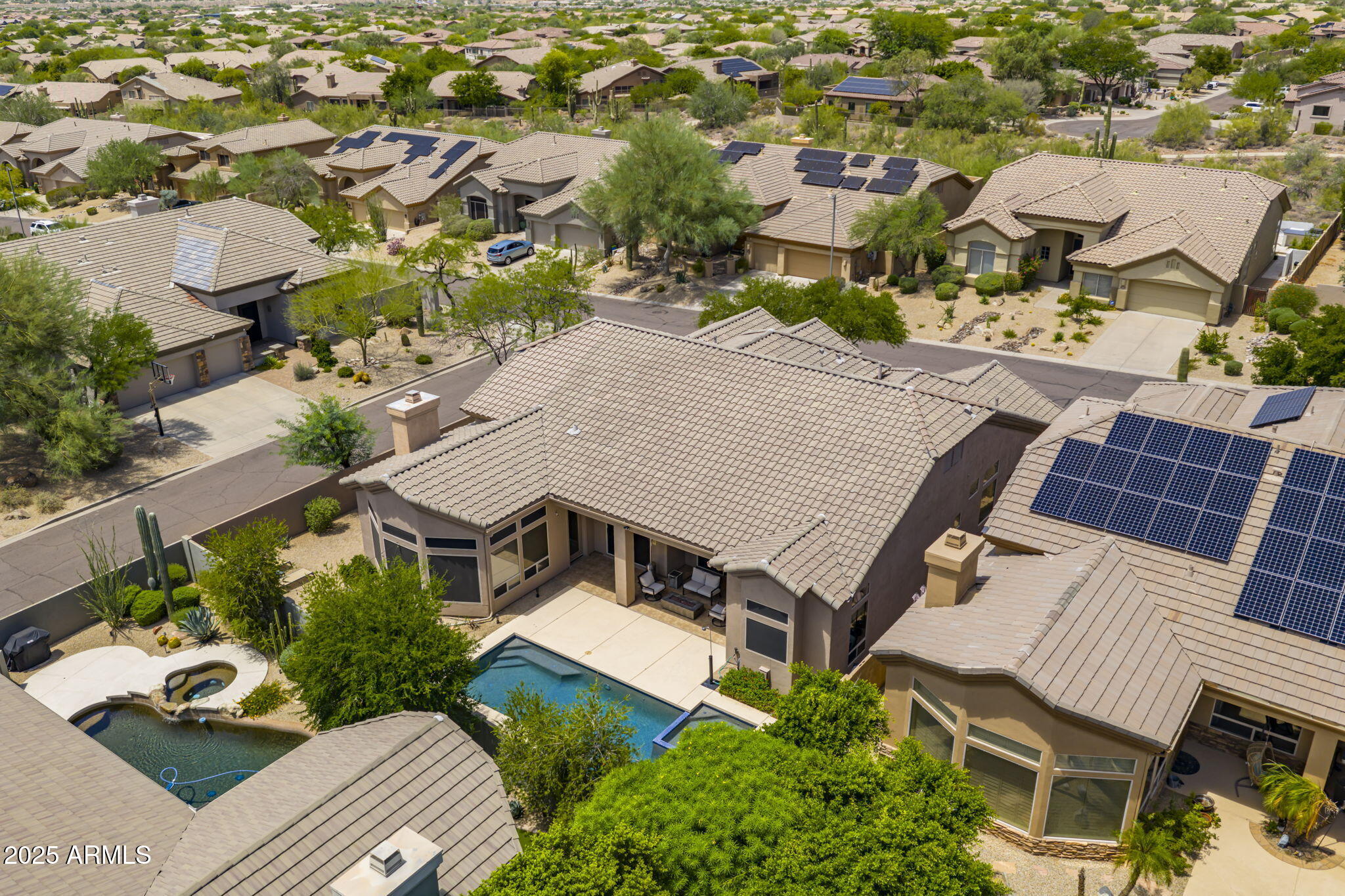 Experience refined desert living in the heart of McDowell Mountain Ranch, where scenic trails, natural beauty, and resort-style amenities create a one-of-a-kind lifestyle. This beautifully maintained home offers 3 bedrooms, a dedicated office, and a versatile bonus room across 3,027 sq ft, designed with both comfort and functionality in mind. The split floorplan ensures privacy, while large windows fill the home with natural light. The open-concept kitchen features a spacious island, double ovens and gas cooktop, perfect for entertaining. The primary suite features dual vanities and closets, a soaking tub, gas fireplace and private access leading to a private backyard retreat complete with a pool and spa, nestled on a 8770 sf corner lot. Thoughtful updates like a newer roof, water heater stylish light fixtures enhance the home's long-term value, reflecting the care and attention given by its current owners.