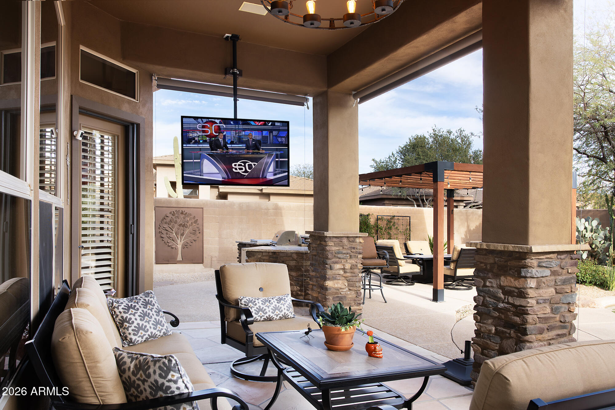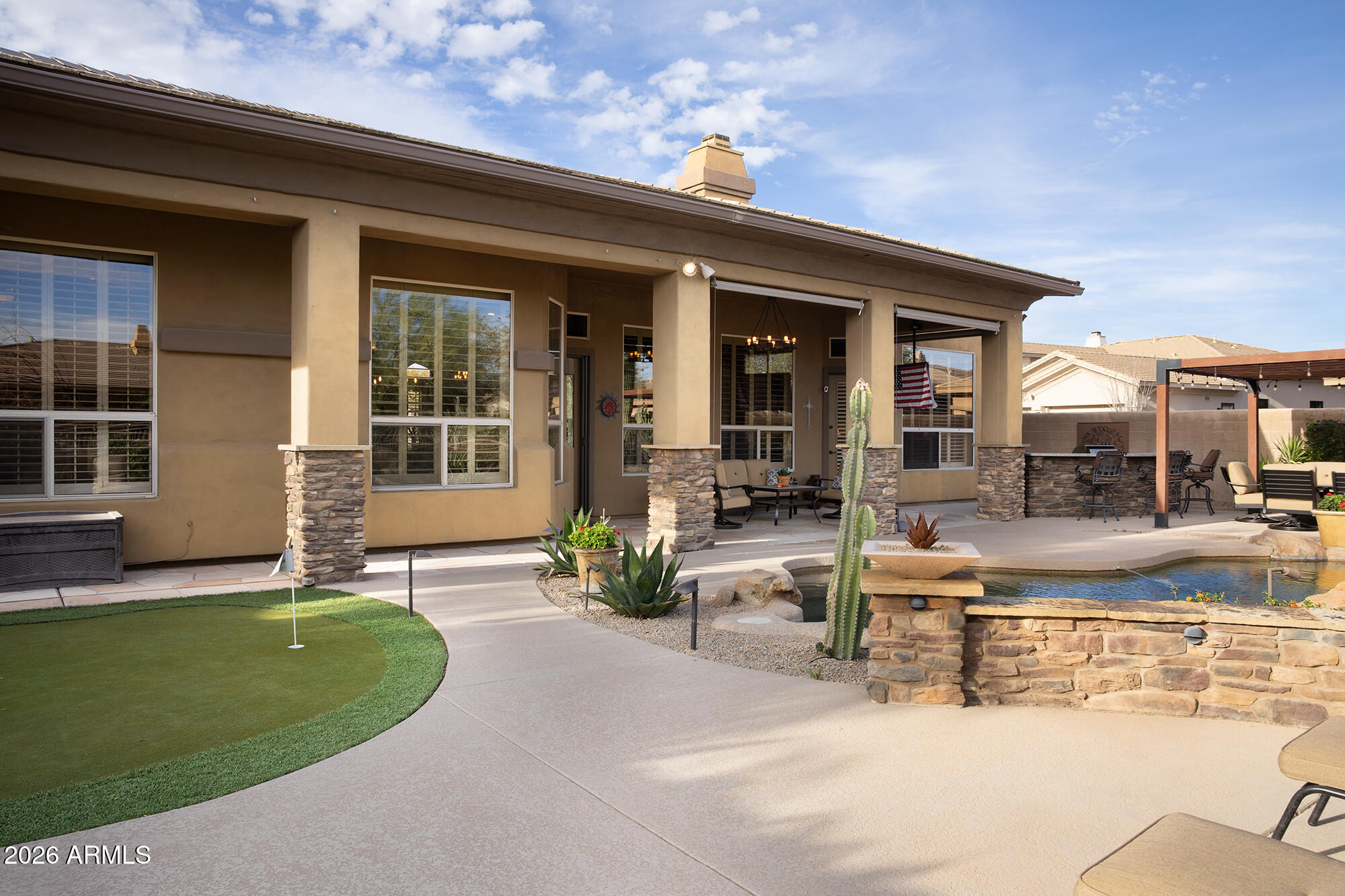 Beautiful home in guard gated Raptor Retreat of Grayhawk. The home, that was upgraded in 2020, features a hugely upgraded resort style backyard great for outdoor entertainment. The kitchen is a chef's dream and master bath is a showpiece. The corner lot backs to a natural wash so separating it from neighbors on 3 sides for great privacy. Recent updates include new roof, HVAC, pool heater, gas stove, plantation shutters, sonos music system, patio sunshades, epoxy garage floor and more. This home is ready to move into.